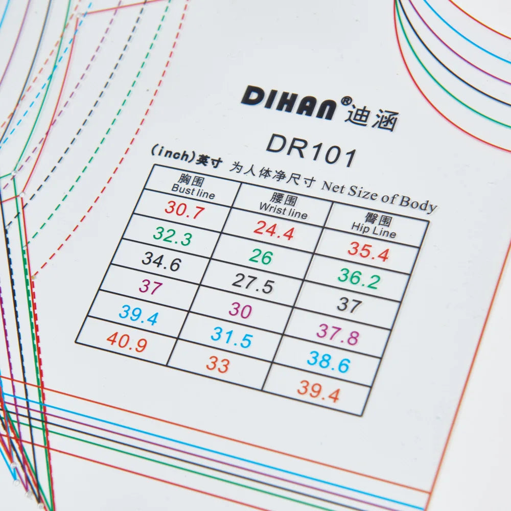 - Diseño de varios tamaños: Incluye seis tallas en una sola plantilla, con orificios de posicionamiento claros para cada talla. Simplemente traza la talla deseada usando los orificios guía para crear un prototipo de vestido básico perfecto.