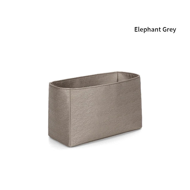 El delicado acabado mate aporta una sofisticación discreta, mientras que la transpirabilidad y el flujo de aire superiores del tejido garantizan una frescura duradera para los artículos guardados. Ideal para organizar maquillaje, accesorios o artículos esenciales, este inserto combina practicidad y arte , protegiendo el forro de su bolso y realzando su elegancia.